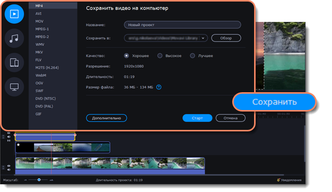 Сохранение видео