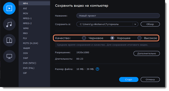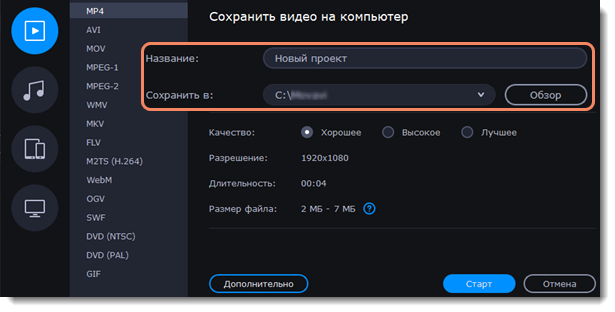 Когда ваш проект будет готов, его необходимо будет сохранить как медиафайл или экспортировать для воспроизведения на различных устройствах и для загрузки онлайн.