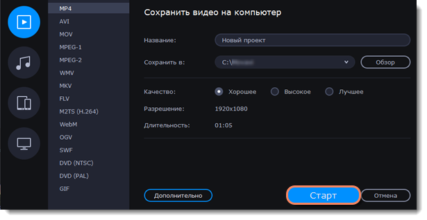 Формат MP4 поддерживается большинством компьютеров на различных операционных системах.