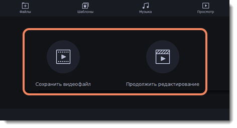 Продолжить редактирование – нажмите, если вы хотите внести финальные штрихи в расширенном режиме. После этого, просто нажмите кнопку Сохранить, когда будете готовы экспортировать видеоролик.