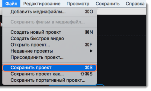 Проект — это файл с расширением *.mepx, который сохраняет работу над видео, включая порядок видеоклипов на таймлайне и любые другие действия в процессе редактирования.