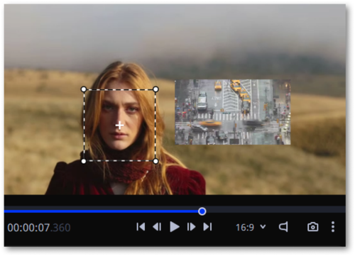 Чтобы изменить размер наложенного клипа, потяните мышью за углы рамки. Пропорции клипа будут сохранены.