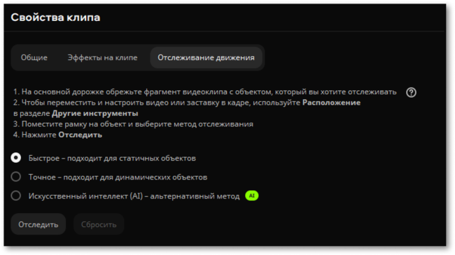 На вкладке Отслеживание движения клип с картинкой, видео или заставкой с дорожки дополнительного видео можно привязать к движущемуся объекту, и он будет следовать за ним.