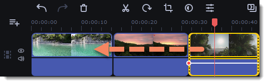 Добавленные в проект новые клипы размещены на таймлайне в том же порядке, в котором вы их добавляли. Чтобы изменить их последовательность, перетащите клипы мышью на нужное место в проекте относительно других клипов. Чтобы выбрать несколько клипов, зажмите клавишу Ctrl и щелкните по нужным клипам либо зажмите левую кнопку мыши и выделите нужные клипы прямоугольником.