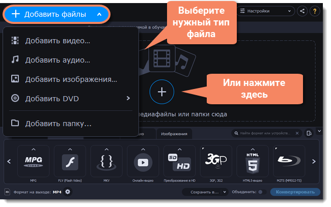 Добавление медиафайлов