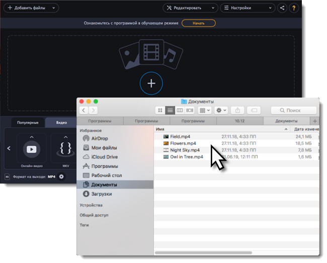 Также, вы можете добавить файлы или папки, перетащив их из окна Finder в Конвертер.