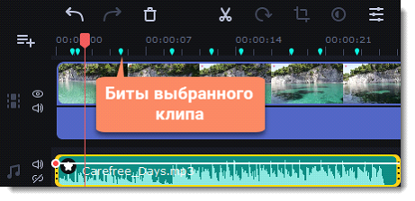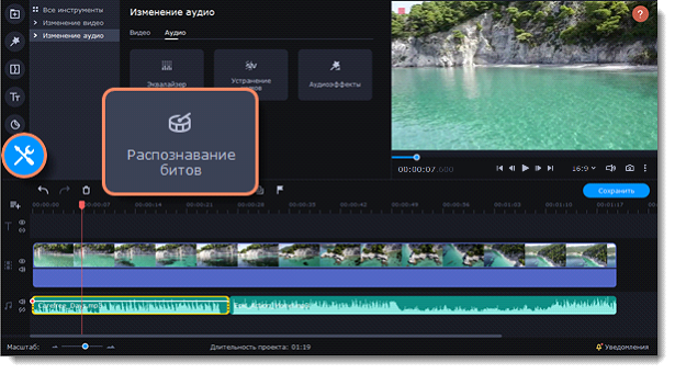 Чтобы сделать ваши видео более динамичными, воспользуйтесь функцией Распознавание битов. С ее помощью вы можете посмотреть биты на таймлайне и подстроить ваше видео под них.
