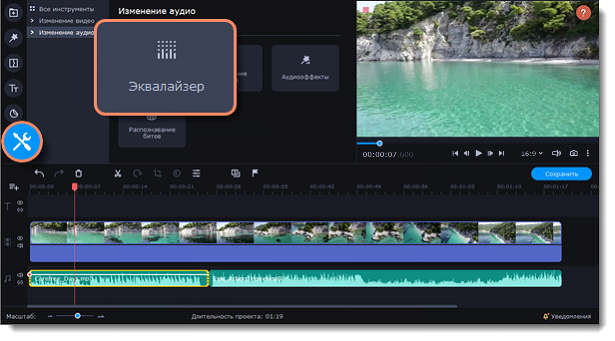 2. В левой части окна выберите вкладку Другие инструменты. В разделе Изменение аудио нажмите Эквалайзер.