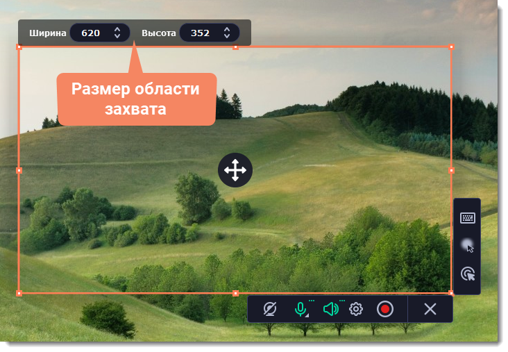 1. На панели управления нажмите кнопку видеокамеры . Включится режим выбора области.