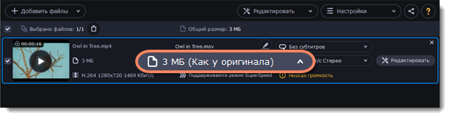 Добавьте видеофайл, размер которого хотите уменьшить.
