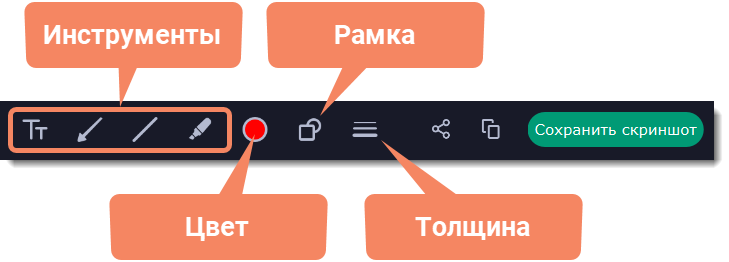 Выберите инструмент, который вы хотите добавить на скриншот: Линия