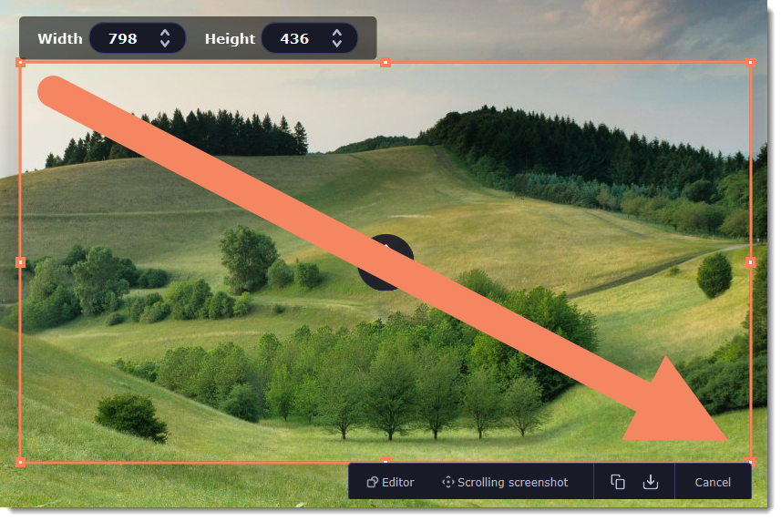 2. Выделите часть экрана, которую вы хотите прокрутить: нажмите Пробел, чтобы выбрать весь экран или выделите нужную область левой кнопкой мыши.