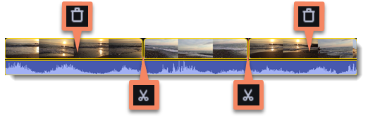 4. Нажмите кнопку Разрезать еще раз. Ненужный фрагмент теперь вырезан как отдельный клип.